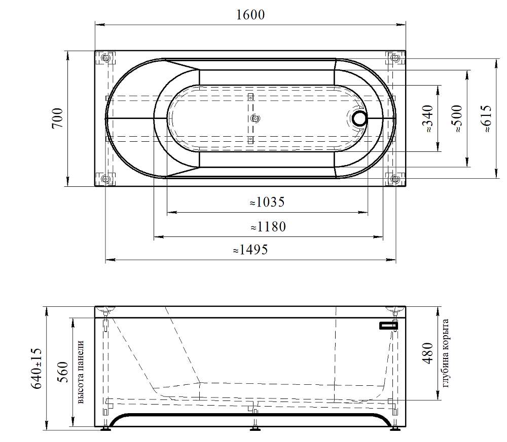 100% сантехнический акриловый лист, армирующий слой из стеклоровинга, влагостойкая ДСП 16мм