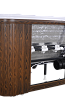 Чаша ванны, рама-подставка, панели - декоративная террасная доска, слив-перелив, 20 гидромассажных форсунок, 15 аэромассажных форсунок, контроллер 400 хромотерапия 2 лампы, смеситель, излив-ручка "Рикарди", система быстрого набора воды, система "Turbo-Pool"-2 шт., ступень. |
